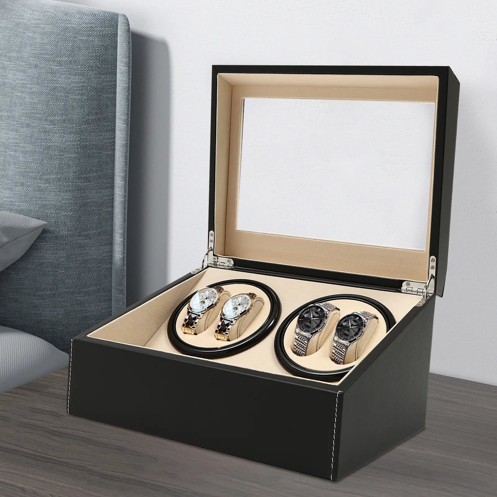 4 Watch Winder Case with 6 Watch Storage Below